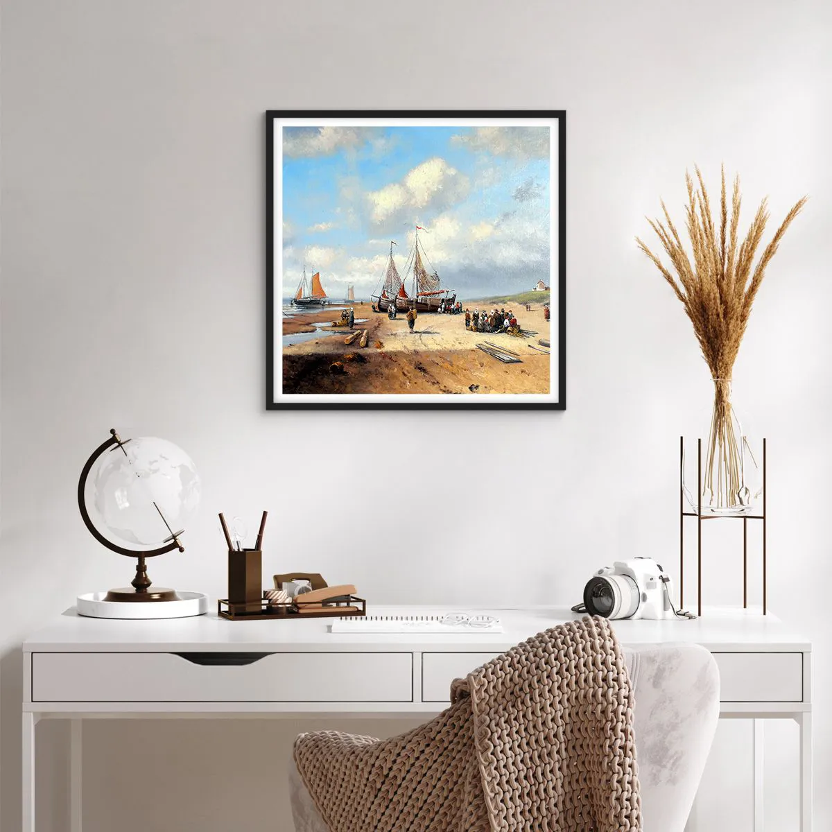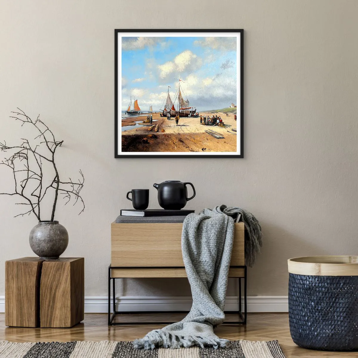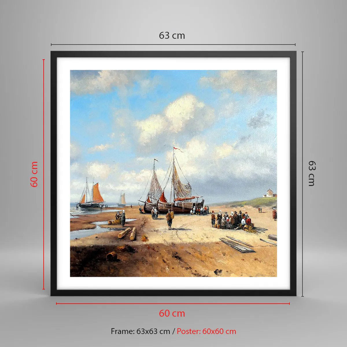 Affisch i svart ram - Efter en lyckad fångst - 60x60 cm