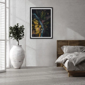 Affisch i svart ram - En fågelperspektiv över en skogsbäck - 50x70cm - Snabbt, allt snabbare - Modern väggdekoration för vardagsrum och sovrum ARTTOR