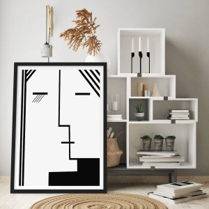 - En minimalistisk och abstrakt tolkning av ett ansikte. Den svartvita kompositionen betonar verkets elegans och moderna karaktär.