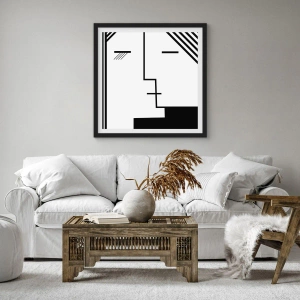 Affisch i svart ram - Ett minimalistiskt, abstrakt ansikte i svartvitt stil. - 50x70cm - Bara en kyss - Modern väggdekoration för vardagsrum och sovrum ARTTOR