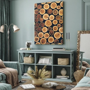 Hur gammal ser jag ut? är ett unikt canvastavla som visar ett mönster av trästockar i tvärsnitt. De varma nyanserna av naturligt trä och de olika ådringsmönstren skapar en harmonisk och inspirerande komposition. Den unika trästrukturen ger bilden äkthet, och dess geometriska arrangemang ger den en modern karaktär.