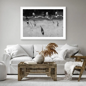 Affisch i vit ram - Fortfarande på stranden... - 60x60 cm