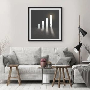 Scenen avbildar en metafor för utveckling, framgång och att gå vidare till nästa steg i livet. De gradvis växande öppningarna symboliserar strävan efter mål och att övervinna utmaningar. Den minimalistiska estetiken och den precisa kompositionen gör postern perfekt för moderna interiörer.