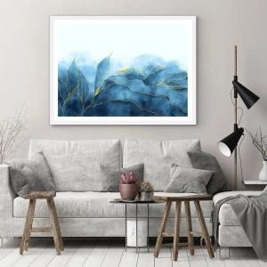 Affisch i vit ram - Blått i guld - 30x30 cm