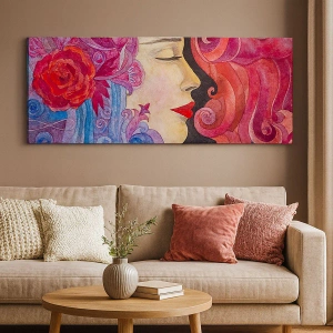 Canvastavla - Bild på duk - Färgglad profil av en kvinna i konstnärlig stil - 70x50cm - Jugendstilen lever - Modern väggdekoration för vardagsrum och sovrum ARTTOR
