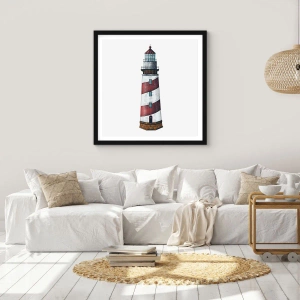 Fyrar har symboliserat säkerhet, fred och vägledning i århundraden, och deras ovanliga arkitektur har inspirerat många konstnärer. Illustrationen, skapad med omsorg om detaljer, betonar motivets unika charm och passar perfekt in i atmosfären i nautiska och klassiska interiörer.