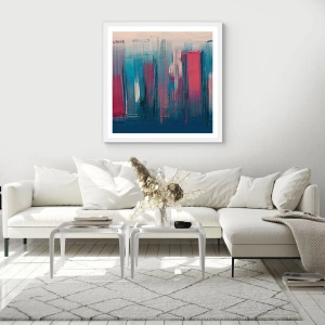 Affisch i vit ram - Vertikal komposition i blått och rött - 91x61 cm