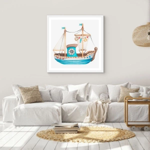 Affisch i vit ram - Ohoj, äventyret! - 50x50 cm