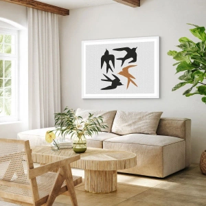 Affisch i vit ram - Svalornas lek - 50x50 cm