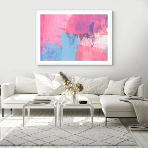 Affisch i vit ram - Rosa, blått och en gnutta ljus - 40x50 cm