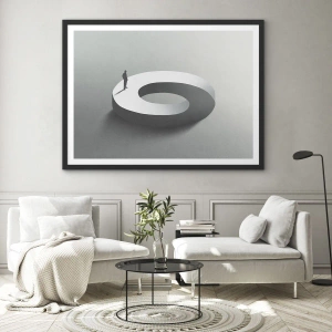 Detta motiv uppmuntrar till reflektion över rum, ensamhet och förhållandet mellan människor och deras omgivning. Den strama estetiken och de perfekt matchade proportionerna gör postern perfekt för moderna interiörer och ger dem en unik karaktär. Den kan bli ett centralt dekorationselement i ett kontor, vardagsrum eller en minimalistisk lägenhet.