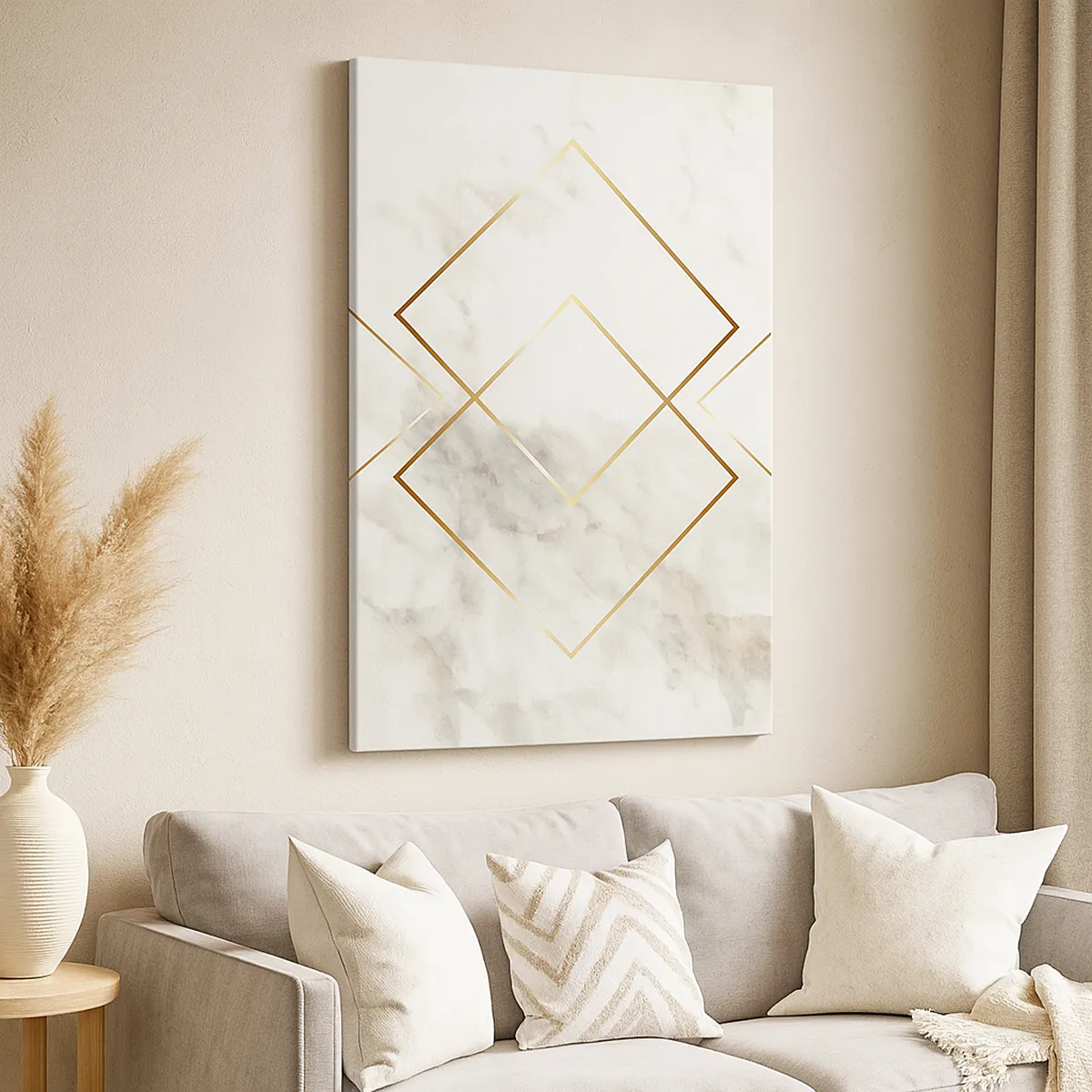 Duken är uppspänd i ramen. Sidor och kanter är täckta med tryck och skapar en fortsättning av bilden. Bilden är klar att hängas på väggen. Varje produkt har en ögla som är fastsatt i ramen samt en monteringssats (skruv + plugg).