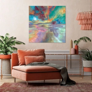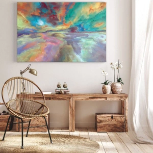- Denna canvastavla avbildar ett abstrakt molnlandskap i intensiva, livfulla färger. Det är den perfekta dekorationen för att skapa harmoni och konstnärlig känsla i alla interiörer.