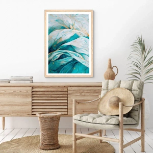 Affisch i ram av ljusek - Blå abstraktion med guldmotiv - 70x50 cm