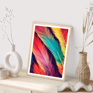Affisch i ram av ljusek - Fjäderlik regnbåge - 91x61 cm