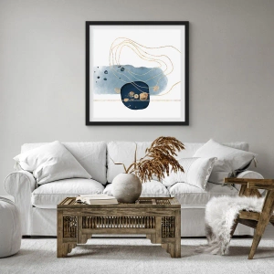 Affisch i svart ram - En modern abstrakt komposition i nyanser av blått och guld. - 50x70cm - Blå-guld fantasi - Modern väggdekoration för vardagsrum och sovrum ARTTOR