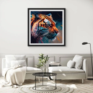 Affisch i svart ram - Ett dynamiskt porträtt av en tiger i konstnärlig stil - 50x70cm - Vild skönhet - Modern väggdekoration för vardagsrum och sovrum ARTTOR
