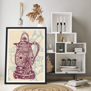 Affisch i svart ram - En dekorerad vintagekanna på en dekorativ bakgrund - 50x70cm - Skönhet av det vardagliga livet - Modern väggdekoration för vardagsrum och sovrum ARTTOR
