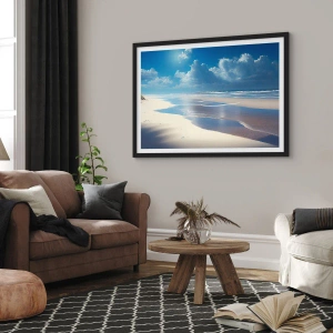 Affisch i svart ram - En solig strand med himlen som speglas i vattnet - 50x70cm - Semester i paradiset - Modern väggdekoration för vardagsrum och sovrum ARTTOR