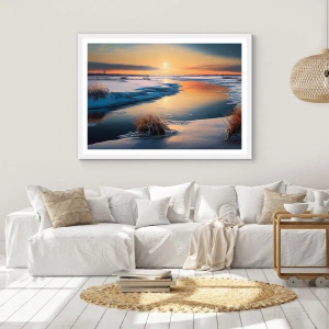 Affisch i vit ram - Vintersolnedgång - 60x60 cm