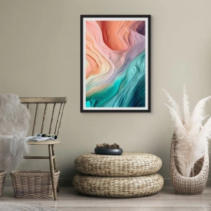 - En modern poster med en abstrakt komposition av vågiga linjer i pastellfärger. Fina färgövergångar och organiska former ger den en subtil, konstnärlig karaktär. Perfekt för eleganta interiörer. Postern är inramad i en svart ram.