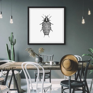 - En minimalistisk poster med en svartvit illustration av en insekt i detaljerad stil. Precisa linjer och ett kontrasterande färgschema ger den en modern känsla. Perfekt för unika interiörer. Postern är inramad i en svart ram.
