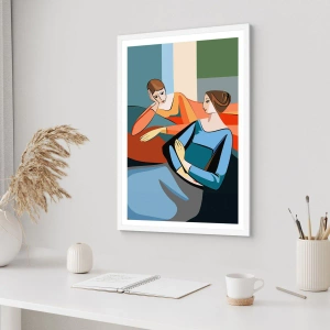 Affisch i vit ram - Ett ögonblick av förtrolighet - 60x60 cm