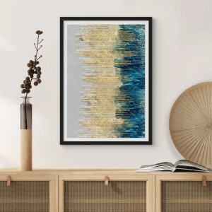 Affisch i svart ram - En abstrakt komposition inspirerad av en gyllene strand och havet. - 50x70cm - Förgylld gräns - Modern väggdekoration för vardagsrum och sovrum ARTTOR