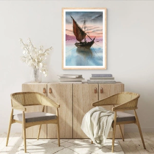 Affisch i ram av ljusek - Kväll i hamnen - 30x40 cm