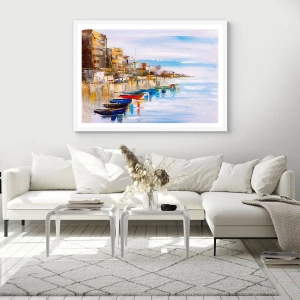 Affisch i vit ram - Flerfärgad urban hamn - 30x30 cm