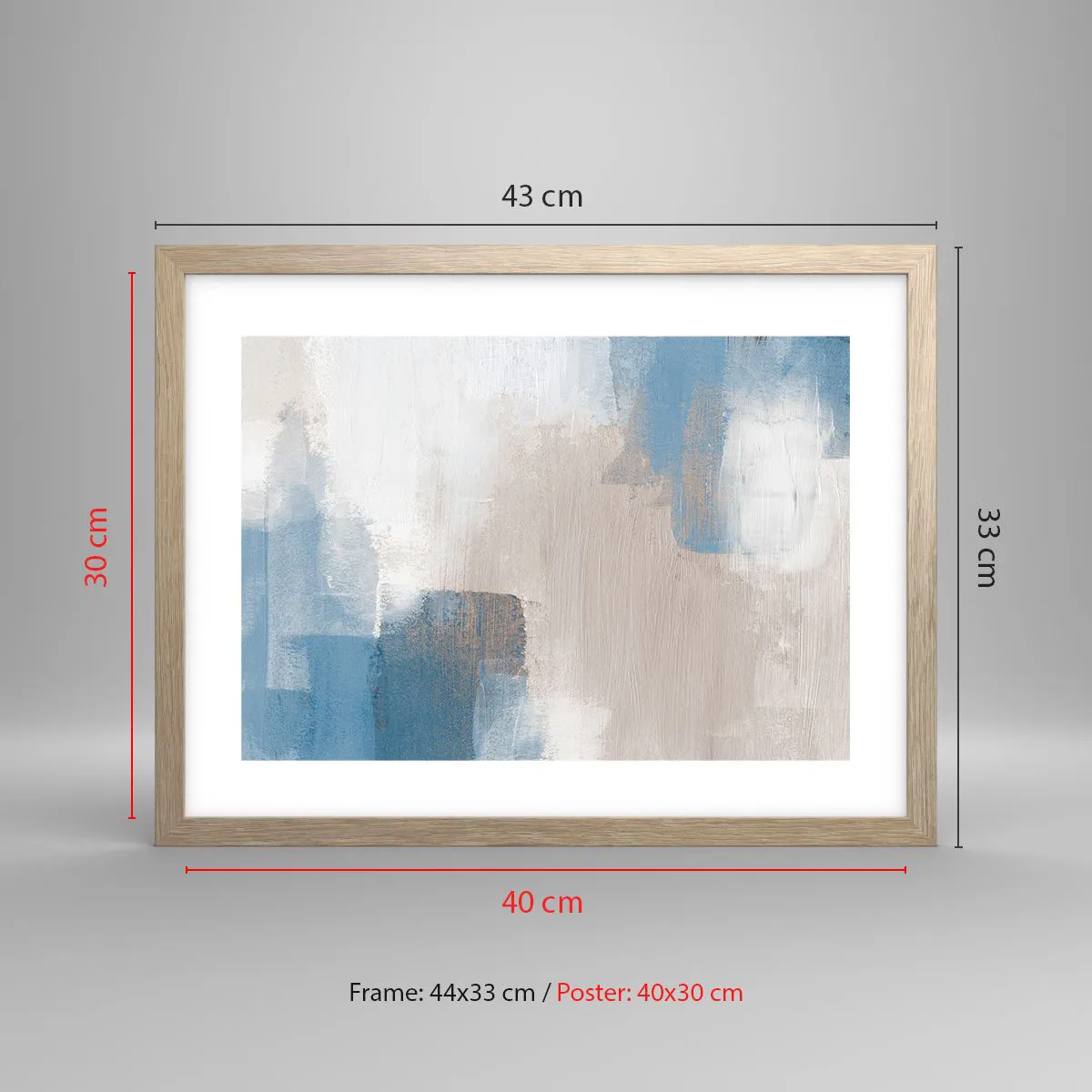 Affisch i ram av ljusek - Rosa abstraktion bakom en blå slöja - 40x30 cm