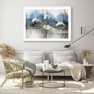 Affisch i vit ram - Som i en saga om vilda svanar - 91x61 cm