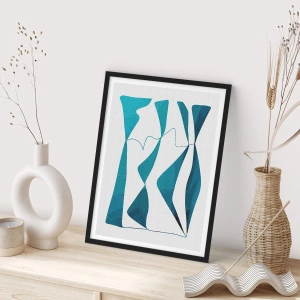 Affisch i svart ram - En abstrakt komposition i blå nyanser med dynamiska linjer. - 50x70cm - Abstraktion: en turkos förening - Modern väggdekoration för vardagsrum och sovrum ARTTOR