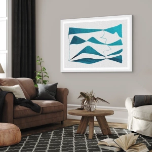Affisch i vit ram - Abstraktion: en turkos förening - 100x70 cm