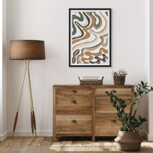 Affisch i svart ram - Meandrar av jordnära färger - 60x60 cm