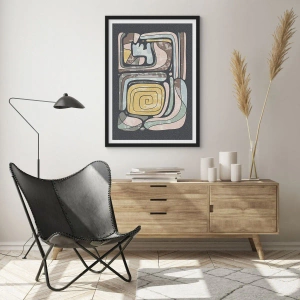 Affisch i svart ram - Abstrakt konstverk med geometriska mönster i jordnära toner - 50x70cm - Abstraktion i en förcolumbiansk anda - Modern väggdekoration för vardagsrum och sovrum ARTTOR