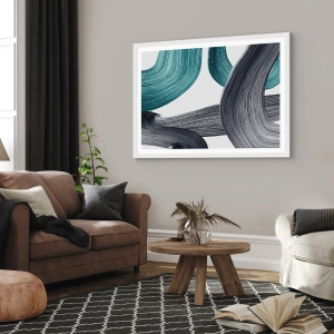 Affisch i vit ram - Smaragd och svarta spår - 40x50 cm