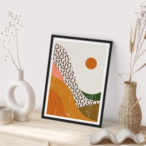 Affisch i svart ram - Abstrakt landskap i varma färger - 50x70cm - Solig abstraktion - Modern väggdekoration för vardagsrum och sovrum ARTTOR