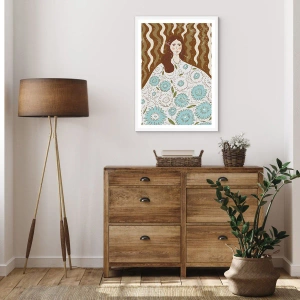 Affisch i vit ram - Porträtt i blommig mantel - 50x70 cm