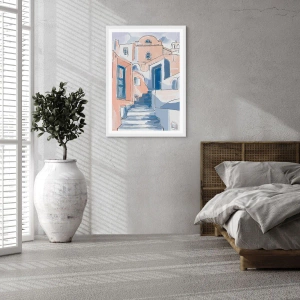 • Arkitektur, Grekland, byggnader, Arkitektur, Pastell, Landskap, Resor, Konst, För kontoret, För arbetsrummet, För matsalen, För hallen, För vardagsrummet, För sovrummet, Vit, brun, blå, Vertikal