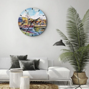 Väggklocka - Klocka på glas - Regnbågseftermiddag - 30x30 cm