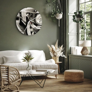 Klockan är tillverkad av glas med 4mm tjocklek. Klockans utförandeteknik överensstämmer med säkerhetsklassen 2B2 enligt standarden PN-EN 12600:2004 vilket garanterar slagtålighet. Klocka på glas är klar för upphängning - är försedd med metallögla fastsatt på klockans baksida samt en distans av skum som justerar avståndet mellan klockan och väggen. Klockan har en tyst steglös mekanism som strömförsörjs med 1,5V AA batteri (batteriet ingår inte).