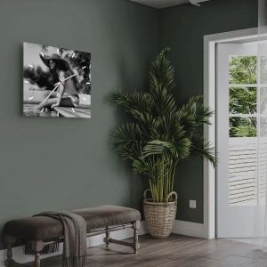 Klockan är utförd med den nyaste utskriftstekniken som garanterar bibehållande av naturliga färger och en hög färgmättnad. Tillverkning av klockor på glas sker i flera etapper. Den högkvalitativa utskriften och de två skyddsskikten genomgår en process för termisk sammanfogning med glaset. För detta använder vi en innovativ teknik som omfattar ugnar för glaslaminering i vakuummiljö.