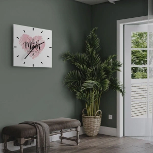 Väggklocka - Klocka på glas - Ett rosa hjärta med orden "bästa mamma" på vit bakgrund - 30x30cm - Alltid rätt ögonblick - Modern väggdekoration för vardagsrum, kök och sovrum ARTTOR