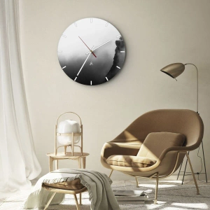 Väggklocka - Klocka på glas - En svart sten ovanför en dimmig avgrund i grå nyanser - 30x30cm - På världens gräns - Modern väggdekoration för vardagsrum, kök och sovrum ARTTOR