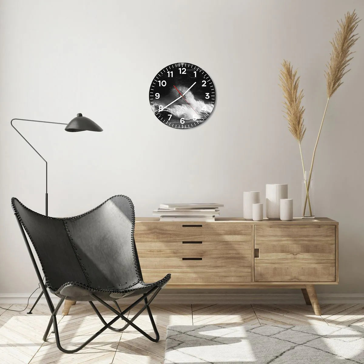 Klockan är utförd med den nyaste utskriftstekniken som garanterar bibehållande av naturliga färger och en hög färgmättnad. Tillverkning av klockor på glas sker i flera etapper. Den högkvalitativa utskriften och de två skyddsskikten genomgår en process för termisk sammanfogning med glaset. För detta använder vi en innovativ teknik som omfattar ugnar för glaslaminering i vakuummiljö.