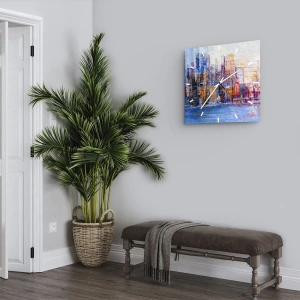 Väggklocka - Klocka på glas - En glädjefylld metropol - 40x40 cm