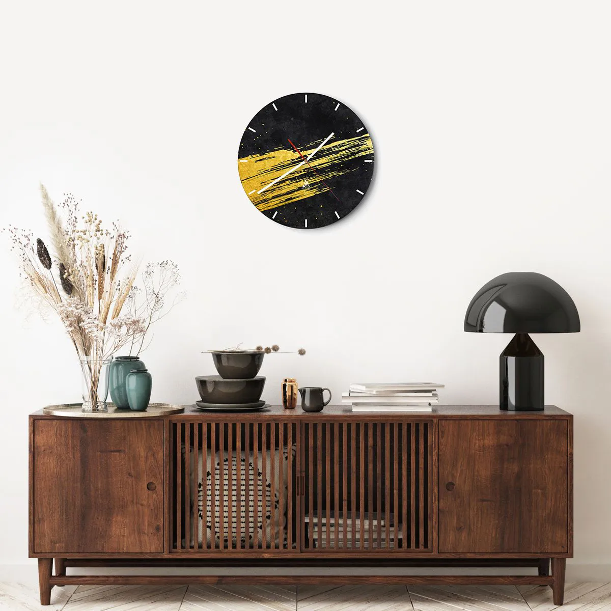 Klockan är utförd med den nyaste utskriftstekniken som garanterar bibehållande av naturliga färger och en hög färgmättnad. Tillverkning av klockor på glas sker i flera etapper. Den högkvalitativa utskriften och de två skyddsskikten genomgår en process för termisk sammanfogning med glaset. För detta använder vi en innovativ teknik som omfattar ugnar för glaslaminering i vakuummiljö.