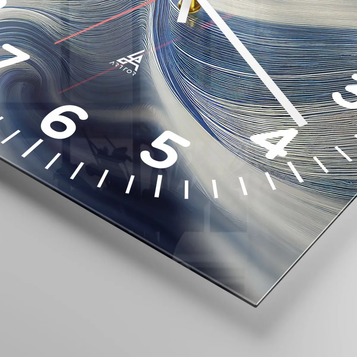 Väggklocka - Klocka på glas - Flöde av blått och vitt - 40x40 cm