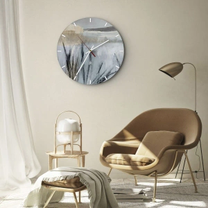 Väggklocka - Klocka på glas - En målerisk vision av ett vinterfält med pastellfärgade gräs - 30x30cm - Vinterfält - Modern väggdekoration för vardagsrum, kök och sovrum ARTTOR